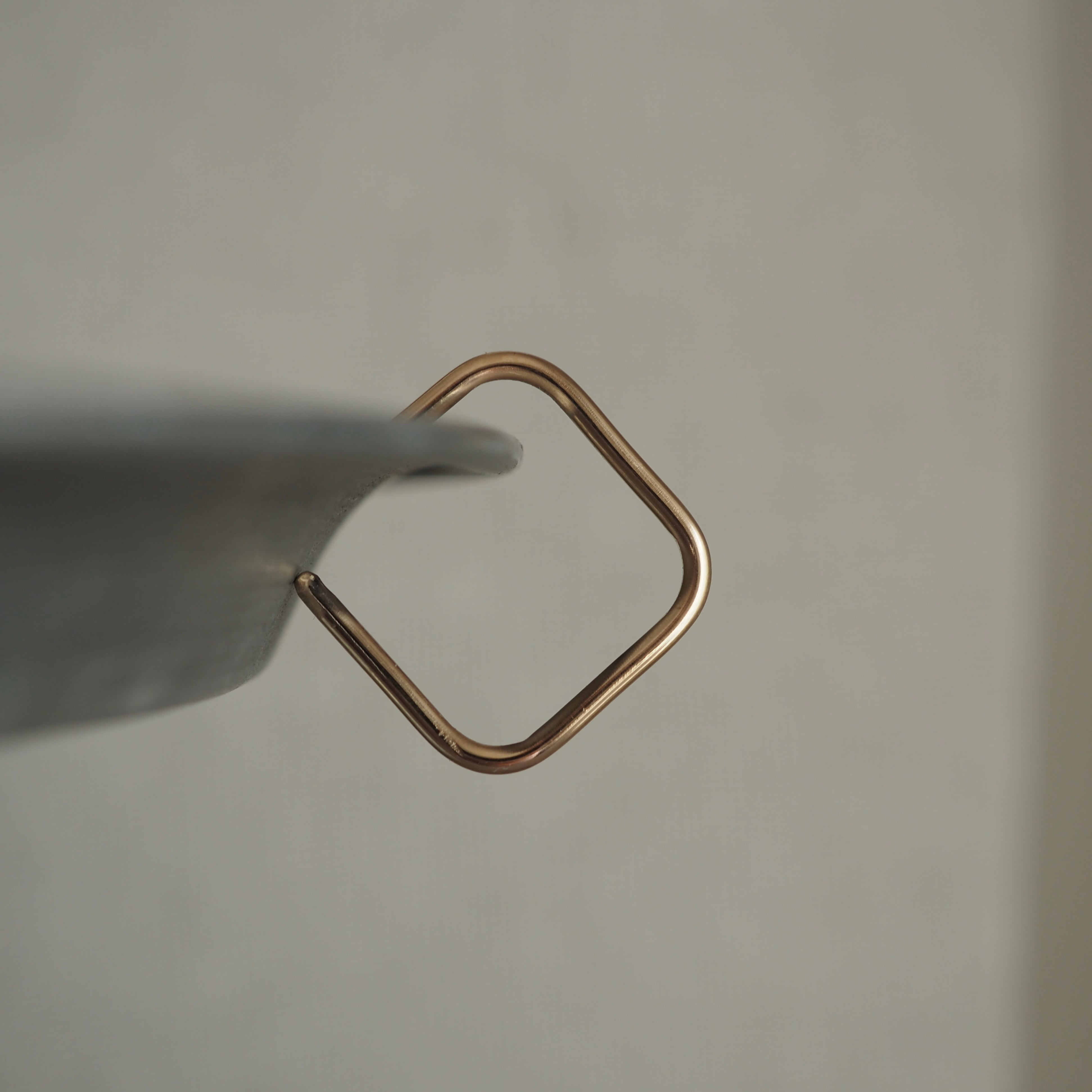Frame cuff – Square (Large)は、ミニマルな造形がやわらかな光を添えます。シンプルでありながらも存在感のあるフレーム形状が、どんなスタイルにも合う万能なアイテムです。2個重ね付けやピアスと合わせて、様々なスタイルでお楽しみください。